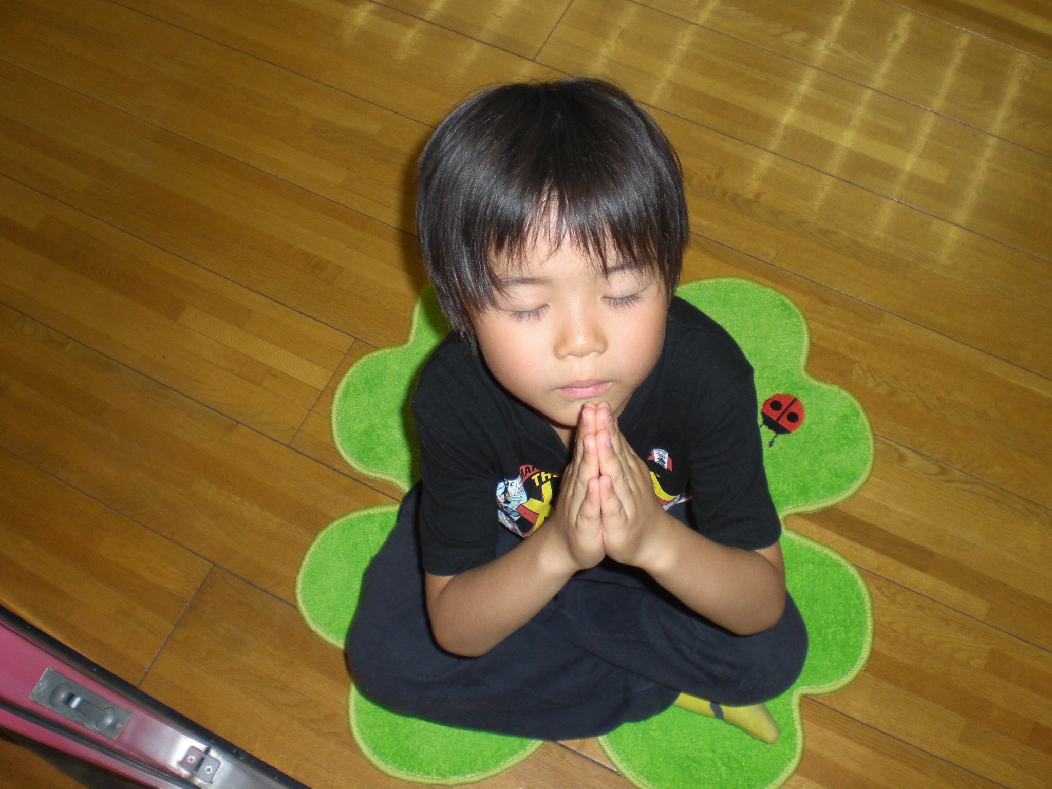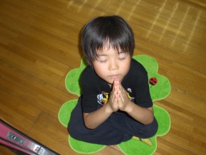 マットの上に座って合掌(^^ゞ