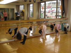 お膝は伸ばしますよ~」