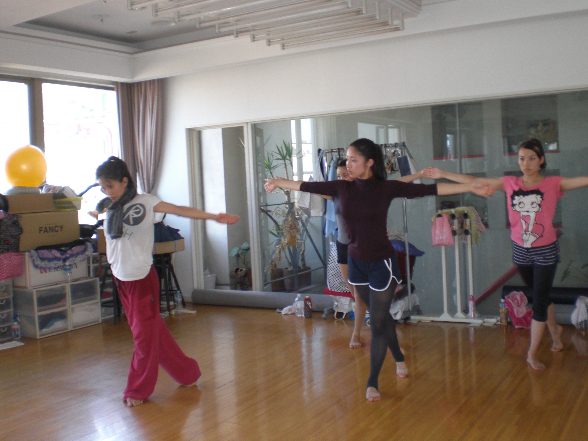 はい、稽古場の端で